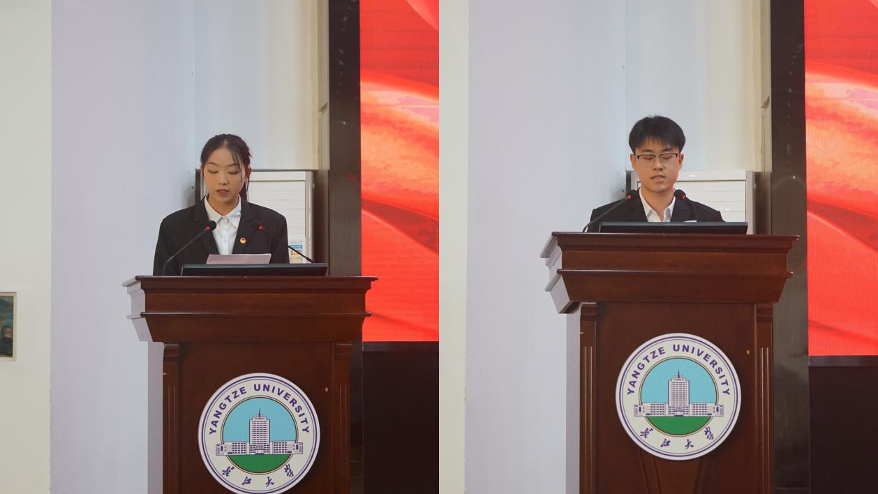 园艺园林学院 2022 级团支部书记季嘉妮作为高年级代表,结合自身经历,分享了她以身作则,带领集体共同进步等宝贵经验。石油工程学院关皓森作为新生团支书代表发言,表达了履职尽责的坚定决心。