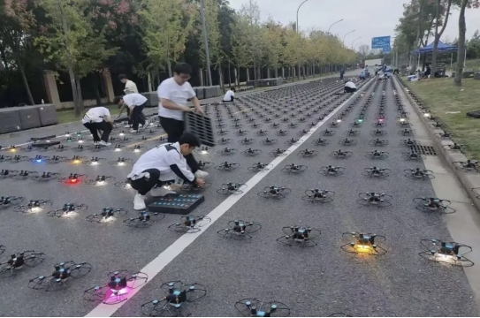 (无人机技术保障组正在检查整理,确保无人机表演能够零失误呈现)