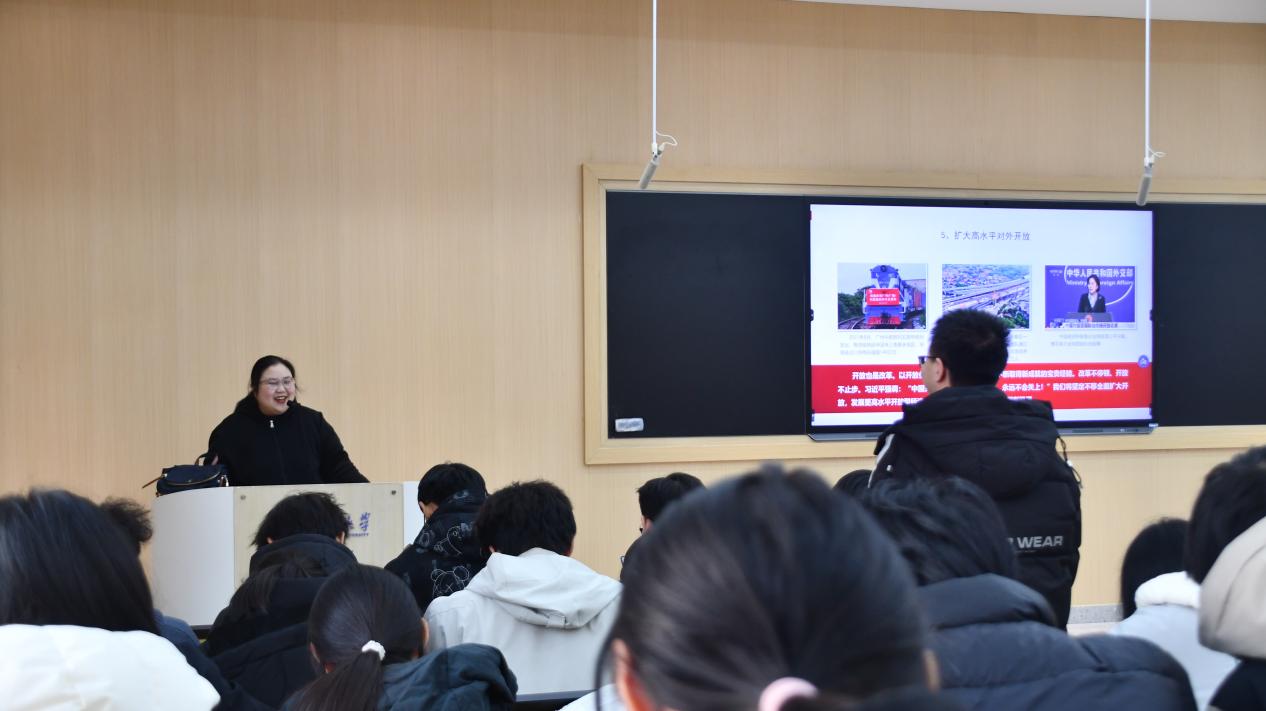 孙萌老师围绕全会核心内涵展开系统讲解,从全会召开的时代背景、重大意义切入,深入阐释“发展新质生产力”“推进中国式现代化”等关键论述,重点解读2026-2030年“十五五”时期作为基本实现社会主义现代化关键阶段的目标任务,引导青年群体深刻把握时代使命,将个人成长与国家发展大局紧密结合。