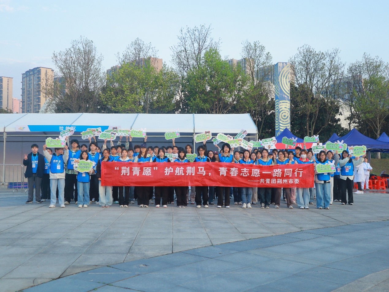 (通讯员:潘瑛慧 来秀文焯 高一茜)3月29日,2026年荆州马拉松顺利开跑并圆满完赛,万名跑者齐聚荆州,在赛道上展现运动风采。校团委积极响应组委会号召,组织近500名青年志愿者投身赛事志愿服务,承担赛道引导、冰池服务、赛后拉伸、影像记录等工作,以专业高效、热忱服务的态度,为赛事保驾护航。