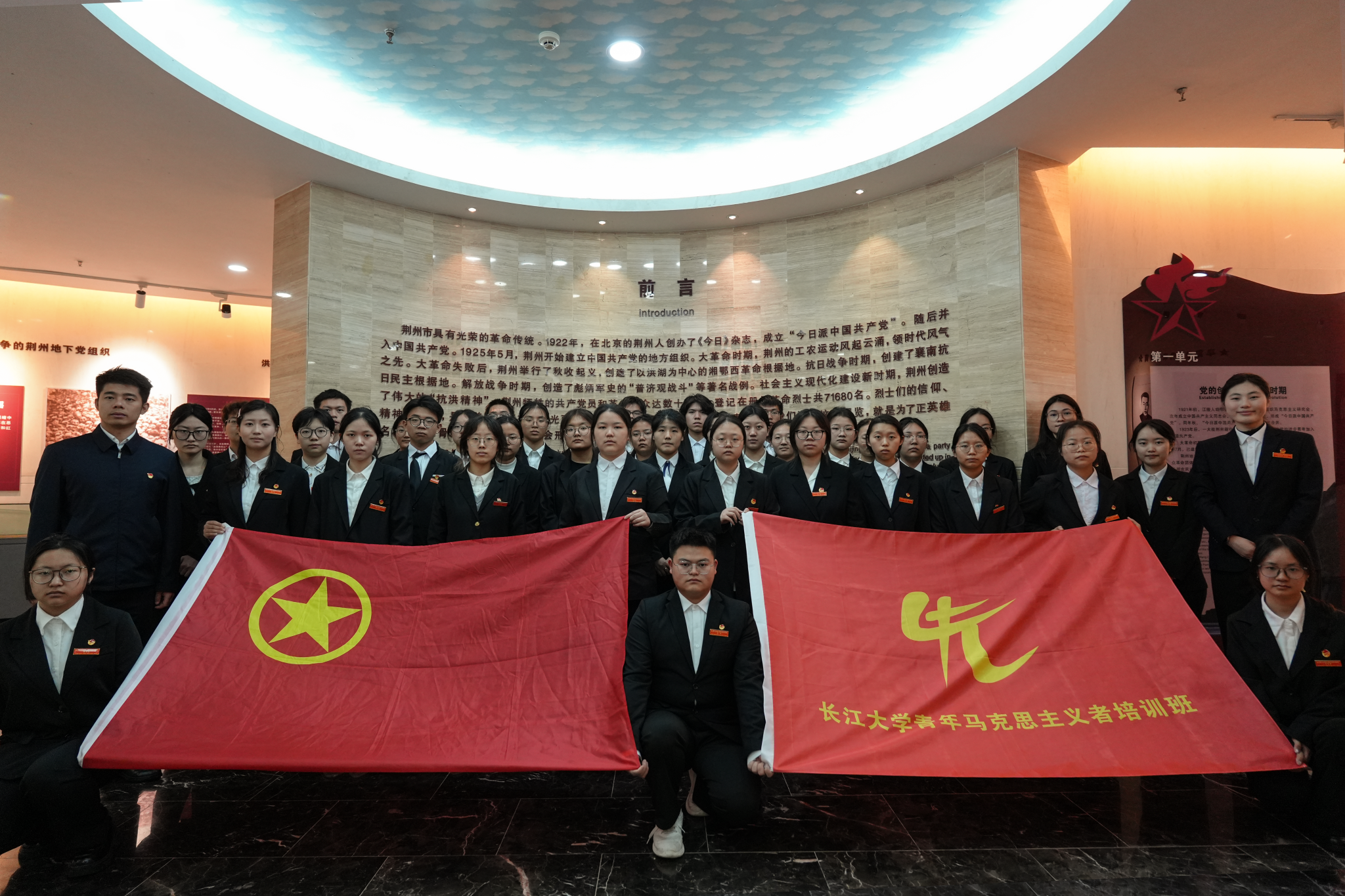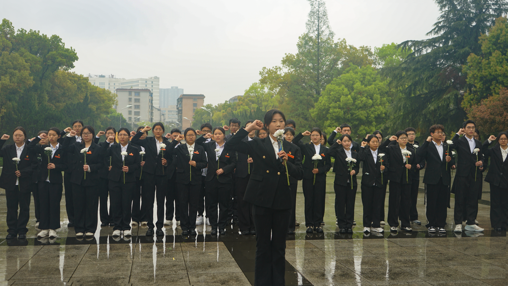 在革命烈士纪念碑前,全体青马班学员重温入团誓词,面对鲜红的团旗庄严宣誓,以铮铮誓言作出新时代共青团员的郑重承诺。